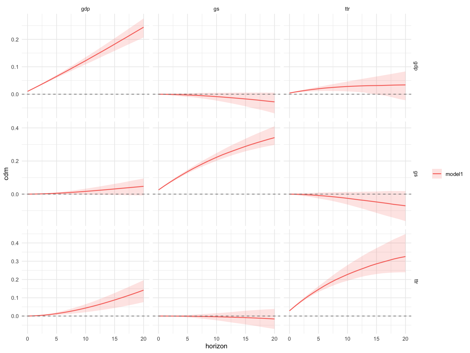 - tidy extraction of impulse responses, CDMs, FEVD, and forecasts