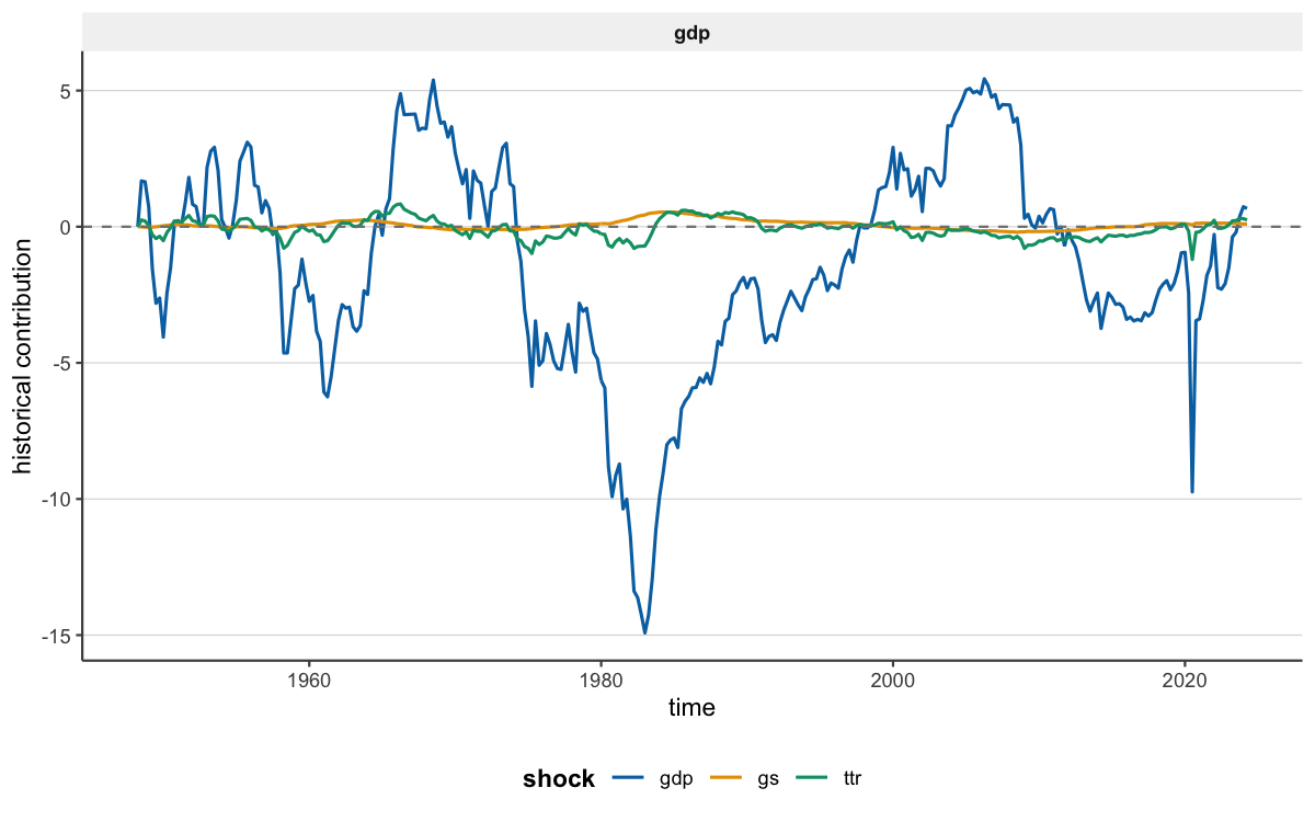 - Post-Estimation Workflows vignette — covers historical decomposition, including full-sample HD plots and event-window composition views, plus hypothesis testing, peak/duration response summaries, and representative-draw selection.